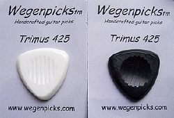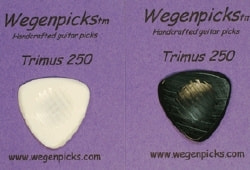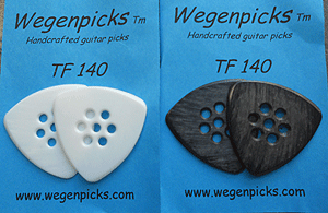 オランダ製ハンドメイドピック。樹脂製で非常に減りにくく、ピック中央部の凹みとスリットによりホールド感も抜群です(M150とM100にはありません)。また、弦と接触面が非常に滑らかでスウィープ奏法などもしやすく、コストパフォーマンスの高いピックです(無くさなければ…)。