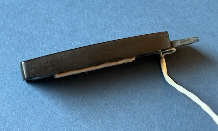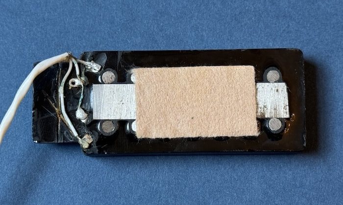 ニューオリンズのギタービルダーJimmy Fosterのネーム入り7弦用のフローティングPUです。ハムバッカータイプで、コイルタップが可能な端子が付いています。ピックガードにマウントするタイプ。形状からすると恐らくKent Armstrong製と思われます。ギターやバンジョーなどマルチな活躍を見せる有田純弘氏の放出品。