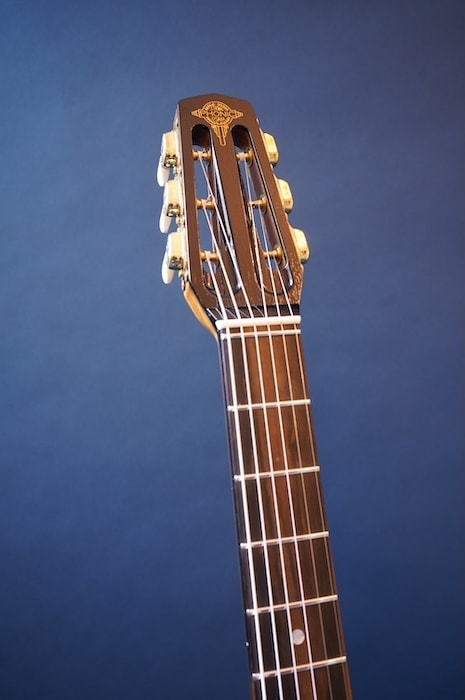 アディロンダック・スプルースの持つパワフルな中低域と抜けの良い高音域、ジプシーギターらしい立ち上がりの早いサウンドキャラクター、1960年代から50年以上この日本にストックされていたハカランダが持つ茶色と黒のコントラストが美しい木目、マッカーサーエボニーのうねる様なエキゾチックな木目と、今やプレミア物となったMillerのセルマーレプリカチューナーetc...もちろんオリジナルセルマー同様の特殊なヘッドジョイントやベンド・トップも完全再現。とくかく詰め込めるものは詰め込んだまさに"全部入り"の当店最高峰モデルです。弾き込めばさらにパワフルさは増して来ます。国内外問わず積極的に持ち出して弾き倒して欲しい一本です。