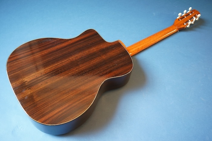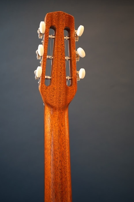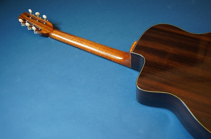 トップ材には真空状態の高温でで熱処理されたトリファイド・シトカ・スプルース単板を採用。サイド&バックにはインディアン・ローズウッドを使用。長年弾き込まれたヴィンテージギターのような、甘く、深く、そして抜けの良いサウンドを新品の状態から味わえる、まさに最強のコスパを誇るマカフェリです。