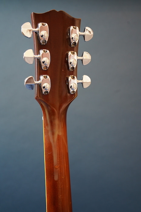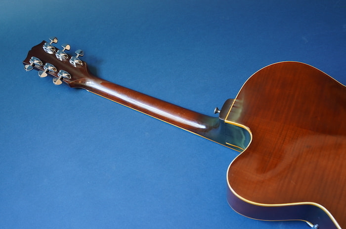 ボディの部分的に塗装の白濁が見られます。ネックのコンディションは良く、フレットの減りもほとんどありません。おそらくリフレットされているものと思われます。
