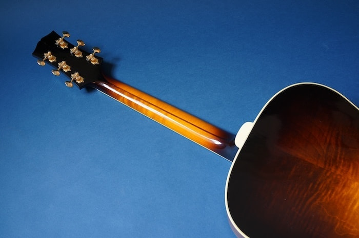 弾き込むほどにメロウでパワフルなサウンドに変化していくのが削り出しトップの特徴的なキャラクターで、自分だけの一本に育てていく楽しみを持った一本ですが、そんなハイスペックなギターを販売店プロデュースならではのリーズナブルな価格にてご提供致します。スケールは25.5"、ナット幅は約43mm。ネックシェイプはクセのないUシェイプです。指板エンド部にはフローティングPUを増設するスペースを確保しています。
