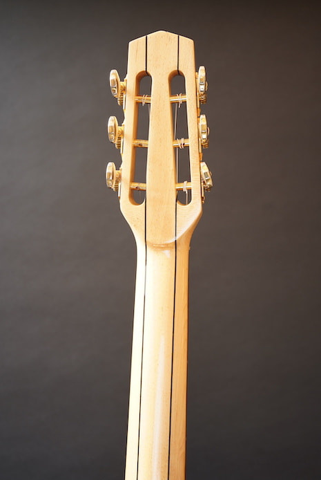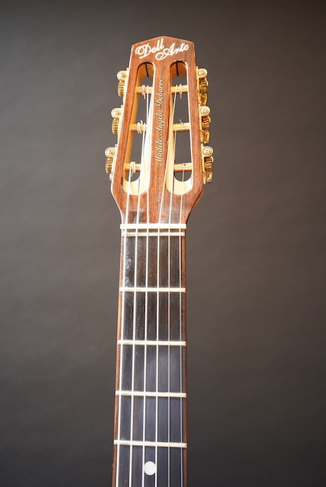 アジアン・メイドのDell' Arte ブランドのうち、このひとまわり大きなボディを持つFavinoスタイルのアンジェロ・デバーレ・モデルだけは、ビンテージのFavinoによく似ているキャラクターを持っていて、絶妙にコンプのかかった生音がなんともオールドライクな雰囲気を醸しており、ルックスもしっかりコピーされているなかなか侮れない一本です。