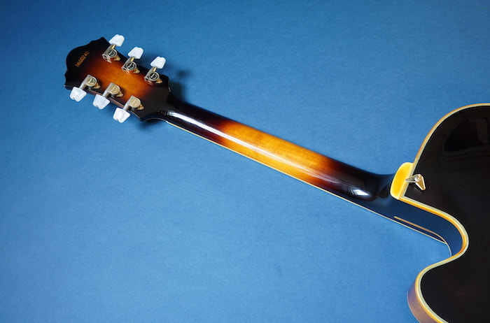 全体的の細かい傷はチラホラあり、バインディングの変色(ひび割れや欠損はありません)などはありますが、40年近く前の楽器としてはかなり綺麗なコンディションを保っています。