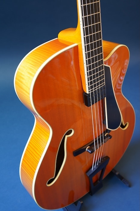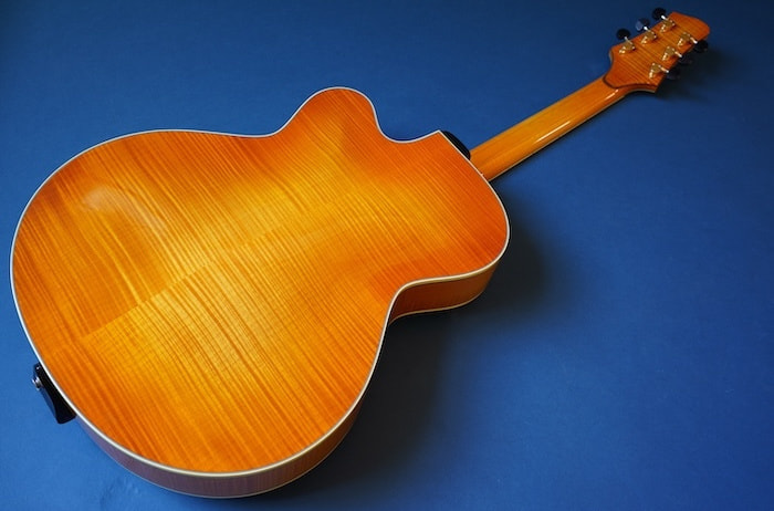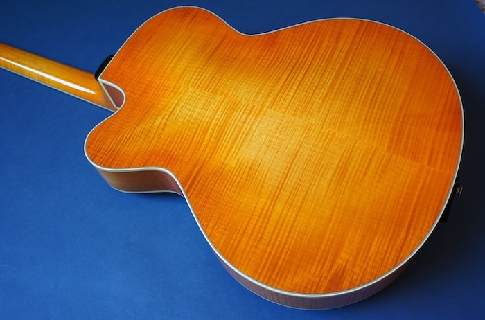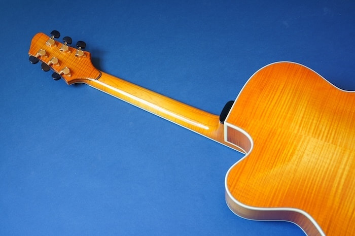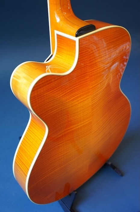 削り出しのカーブ、サイド&バックの美しいトラ杢、仕上げや作りなど、Tom Ribbeckeによる関数うは伊達ではないほどの美しさ。国内生産としては群を抜くクオリティです。