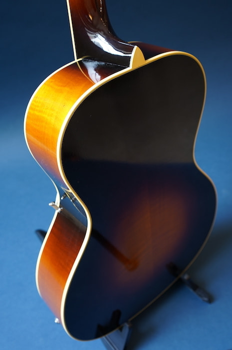 オール単板、ラッカー極薄塗装は当店オリジナル・アーチトップモデルに共通して言えるスペックですが、更にトップのブレイシング構造をXタイプにし、エレクトリックサウンドはもちろん、生音の豊かさも追求した一本です。