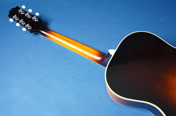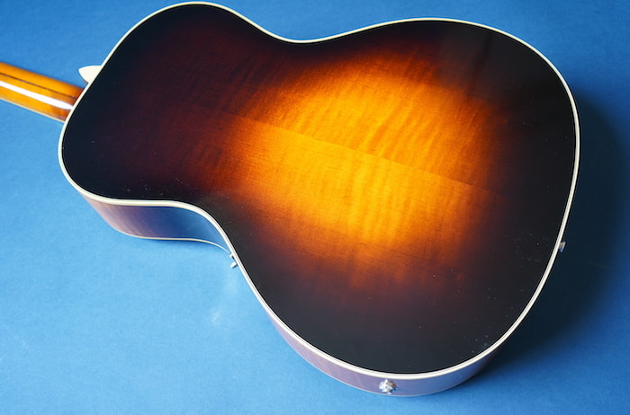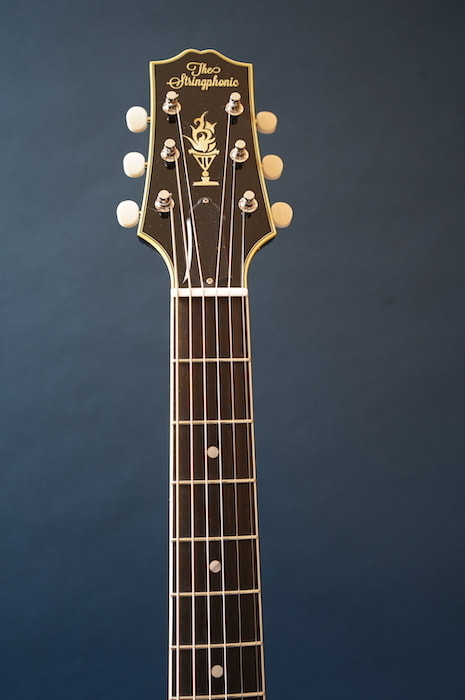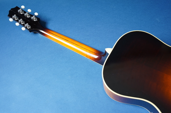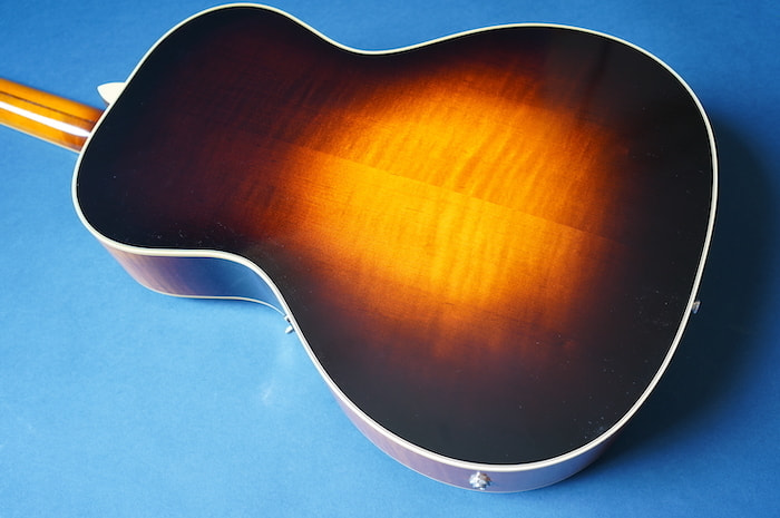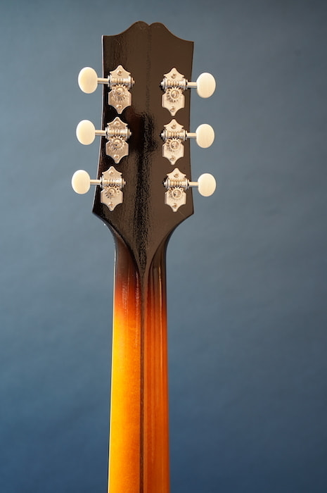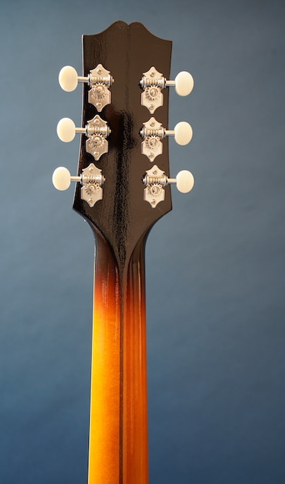 わずかにノイズ混じりのローファイでレトロな3点止めピックアップと、当時の復刻タイプのVolツマミとの組み合わせはまさに戦前ギブソンを彷彿とさせ、ネックは標準的なUシェイプ、ナット幅は約43mmにするなど、現代の使用に則したスペックに焼き直しプレイヤビリティも向上させています。