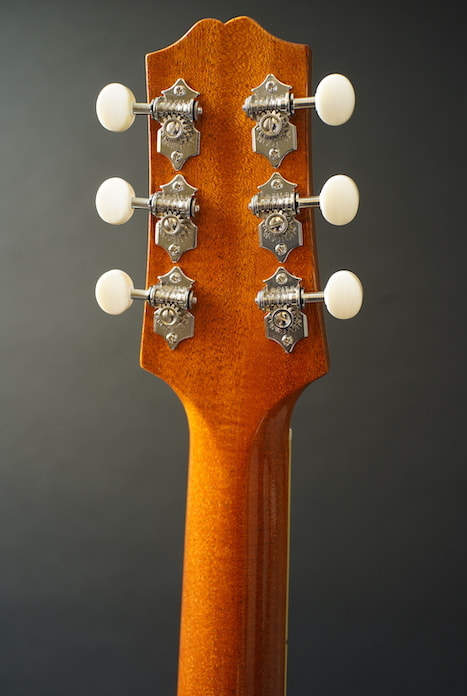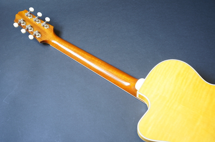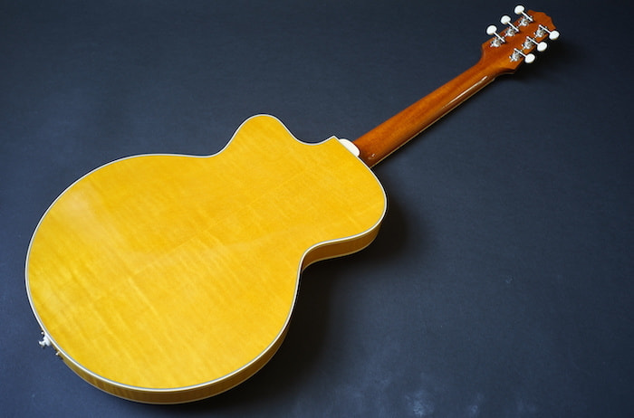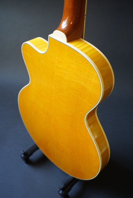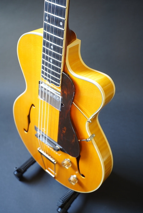 ボディシルエットは当店オリジナル唯一のフラットトップモデル、L−1スタイルのスモールモデルLeRoyと共有しつつもそれをアーチトップ化した13インチ・シンラインボディを持つスモールフルアコ。