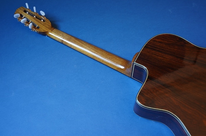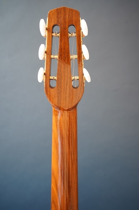 シャーラー社製ペグを搭載し、ゴージャスな木目のハカランダ・サイド&バックとの組み合わせで、数多あるヨーロッパの高級レプリカを凌ぐ出来栄えのギターを純国産で生産することに成功。世界中どこに出しても恥ずかしくないクオリティのマカフェリギターです。このギターで世界中のプレイヤーとジャムセッションして度肝を抜いてやってください。