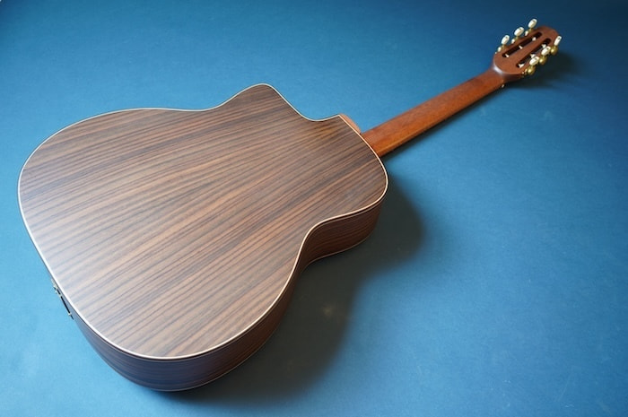 通常のオーバルホールやDホールとは違う、アーチトップギターのようなキャラを併せ持つジプシーギター界の異端児です。