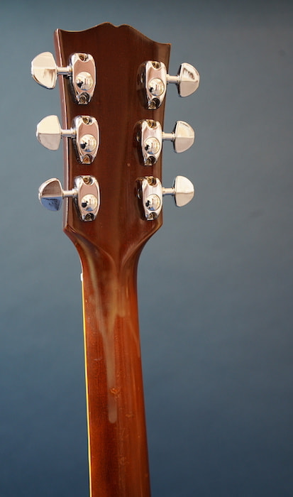 ボディの部分的に塗装の白濁が見られます。ネックのコンディションは良く、フレットの減りもほとんどありません。おそらくリフレットされているものと思われます。