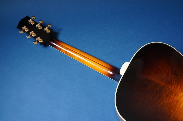 弾き込むほどにメロウでパワフルなサウンドに変化していくのが削り出しトップの特徴的なキャラクターで、自分だけの一本に育てていく楽しみを持った一本ですが、そんなハイスペックなギターを販売店プロデュースならではのリーズナブルな価格にてご提供致します。スケールは25.5"、ナット幅は約43mm。ネックシェイプはクセのないUシェイプです。指板エンド部にはフローティングPUを増設するスペースを確保しています。