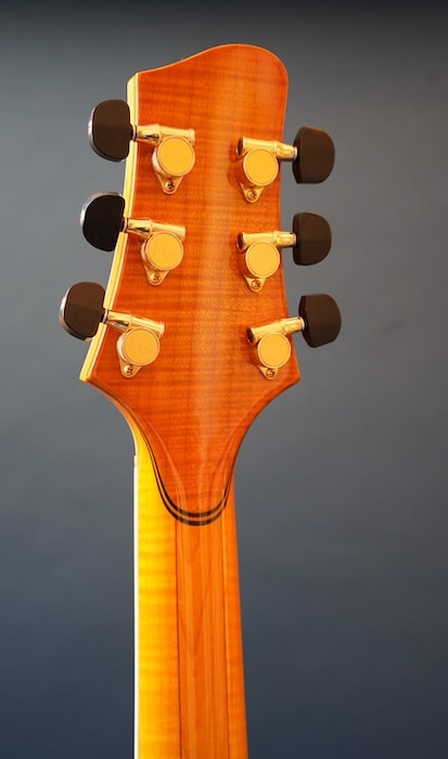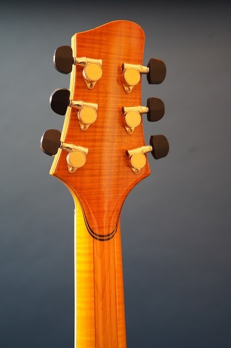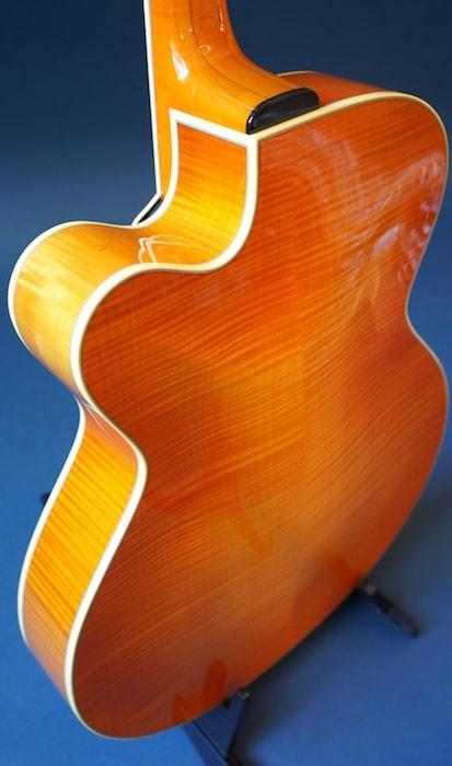 削り出しのカーブ、サイド&バックの美しいトラ杢、仕上げや作りなど、Tom Ribbeckeによる関数うは伊達ではないほどの美しさ。国内生産としては群を抜くクオリティです。