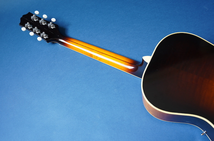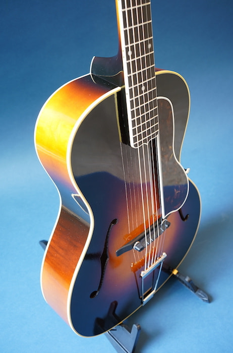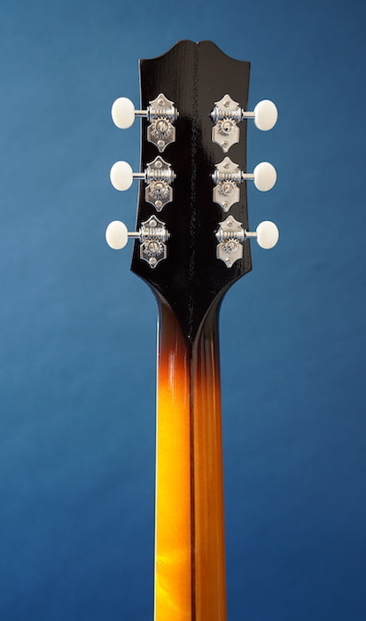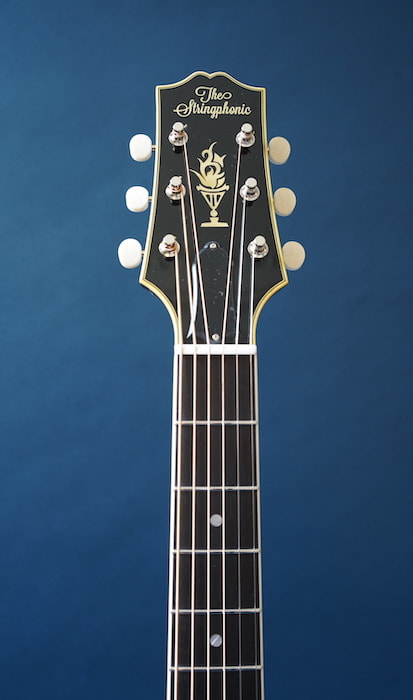 この小さなボディから出てくる生音とは思えない豊かな生鳴りと、アーチトップ特有の歯切れの良さを持ち、現代的なネック形状(ナット幅は約43mm、標準的なUシェイプ)で、オールドジャズだけでなく、ブルースやフィンガースタイルの音楽など幅広いジャンルでそのポテンシャルを十分に堪能出来る一本です。