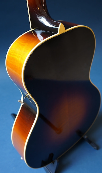 オール単板、ラッカー極薄塗装は当店オリジナル・アーチトップモデルに共通して言えるスペックですが、更にトップのブレイシング構造をXタイプにし、エレクトリックサウンドはもちろん、生音の豊かさも追求した一本です。