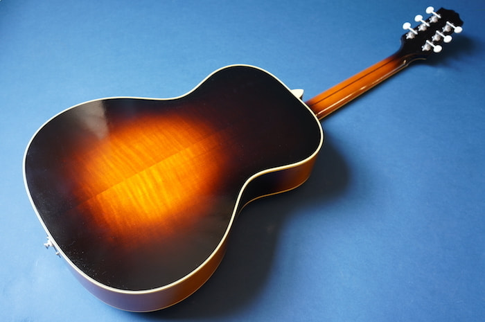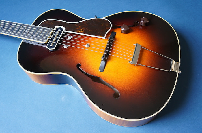 わずかにノイズ混じりのローファイでレトロな3点止めピックアップと、当時の復刻タイプのVolツマミとの組み合わせはまさに戦前ギブソンを彷彿とさせ、ネックは標準的なUシェイプ、ナット幅は約43mmにするなど、現代の使用に則したスペックに焼き直しプレイヤビリティも向上させています。