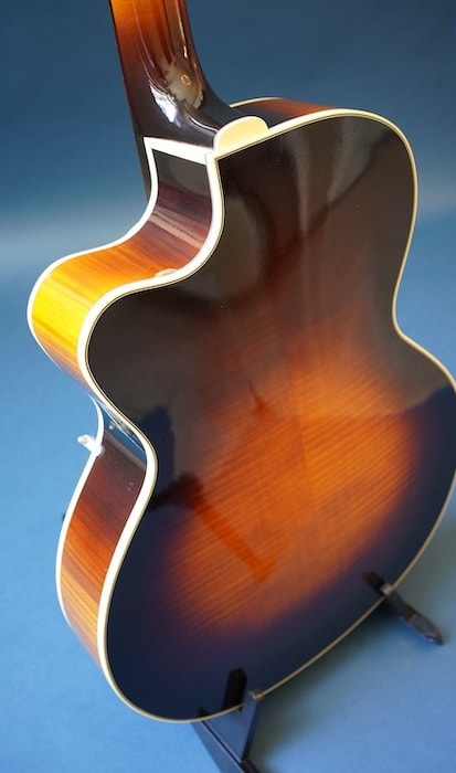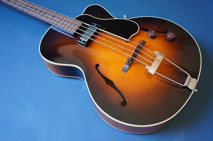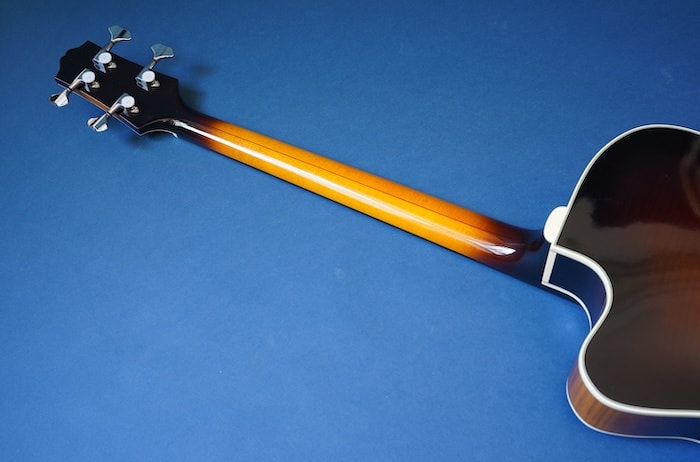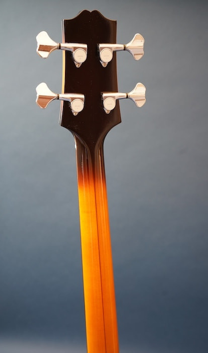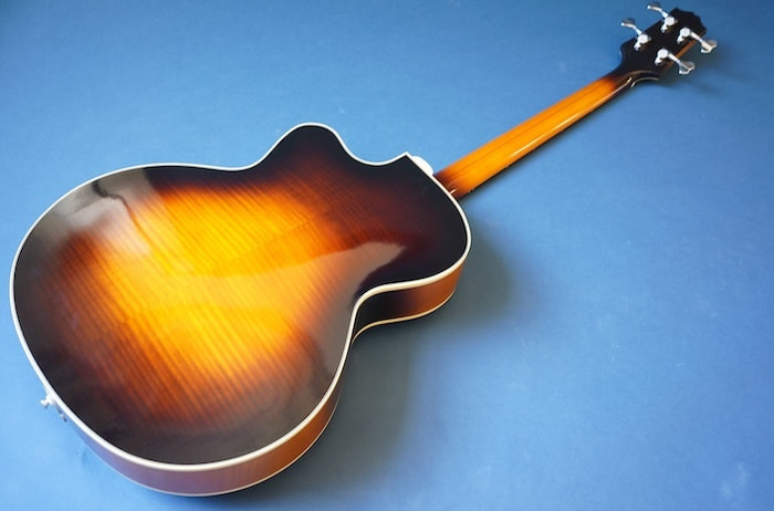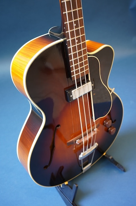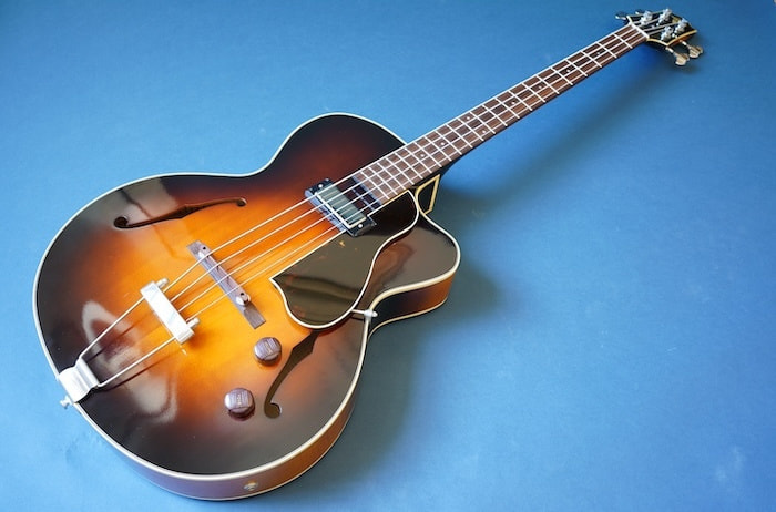 この先恐らく二度と作られることのないであろうフルアコ型のアコースティックベースです。ソリッドボディだとちょっと似合わない、かと言ってウッドベースを持ち出すまでもないアンプラグドな場面でご活躍下さい。