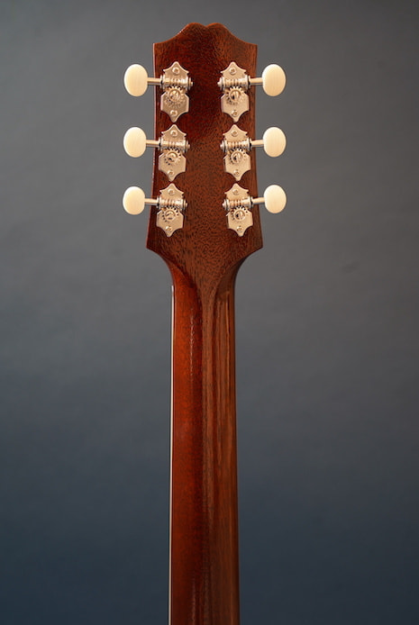 ボディシルエットは当店オリジナル唯一のフラットトップモデル、L-1スタイルのスモールモデルLeRoyと共有しつつもそれをアーチトップ化した13インチ・シンラインボディを持つスモールフルアコです。