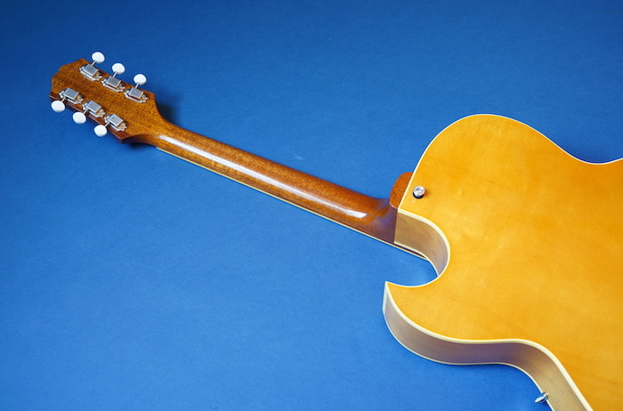 見た目には175ほど派手な装飾などない、さながら1960年代のES-125Cのような洗練されたシンプルさを持った一本に仕上がっています。