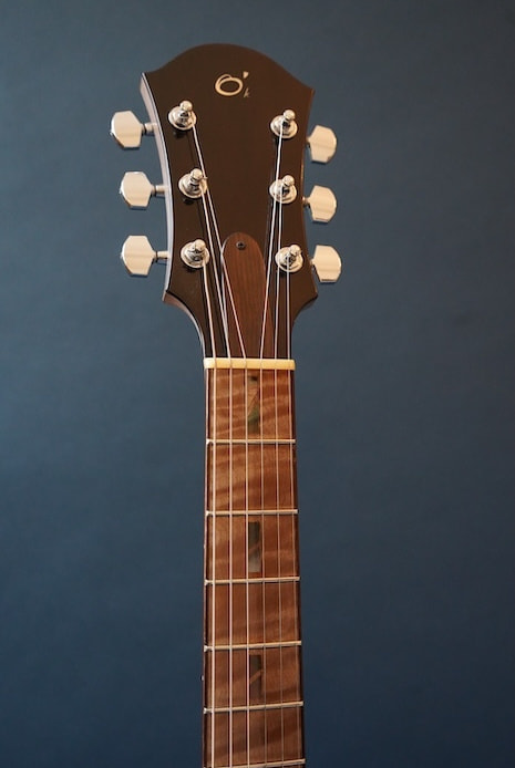 アメリカ人ビルダーTom Ribbeckeの元で修行を積み、2006年に北海道和寒町に工房を構え、その後彼の地元である岩手県遠野に工房を移しアコースティックギターを製作していた若いビルダー、小田島尚人氏。作り、仕上げ、音どれをとっても文句なし。さすが仕上げの美しさにこだわるRibbeckeの元で修行した経歴の持ち主だけあって丁寧な仕事です。