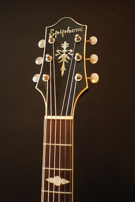 ほぼ市場に出てこない戦前エピフォンの上位機種トライアンフ。16インチボディから始まったトライアンフは1936年に17インチへとモデルチェンジ、ギブソンのL-7をライバルとしたハイエンドモデルです。このトライアンフは17インチに変更して間もないわずかの期間にしか存在しなかったフラットテールピース仕様の希少な一本。この直後に段違いのFrequensatorテールピースへと変更されます。
